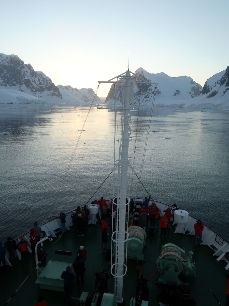 この間、日中にはこれからこれから訪れる南極半島に関してのプレゼンテーションが行われます。内容は南極の動物達、氷河のしくみ、、歴代の探検家など、その他、ツアーに使用するゾディアックボートでの注意事項の説明に加えて、動物観察時のルールや注意事項などの説明もあります。