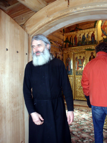 | <写真左から> ■近くの高台にあるロシア教会 ■小さな教会の内部はとっても華やか! ■牧師が快く迎え入れてくれた |