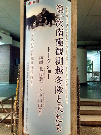 この企画は、以前、東京タワー下にあった犬ぞり達の立ち退きが発端で、その事を知った北村先生は、朝日新聞に相談してこのような講演会になったらしいのです。応募は、予想を上回り倍の申し込みがあったそうで、会場は、満席でした。