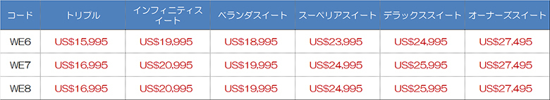 | WE6 | 2023年12月5日~12月12日 | US$16,995~US$29,495 |