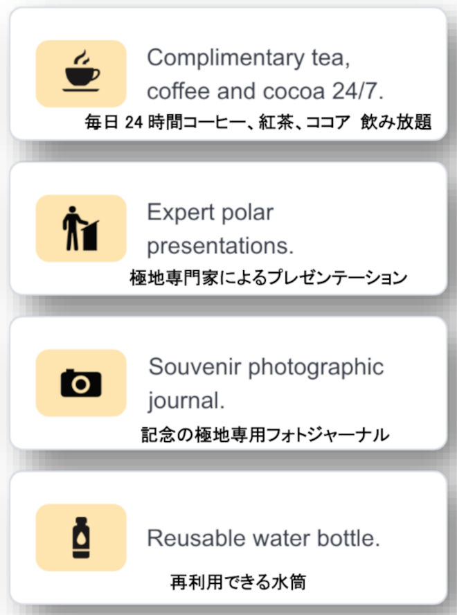 船外でのアクティビティから船内での体験まで、私たちは心に残る瞬間を創り出すことに全力を注いでいます。